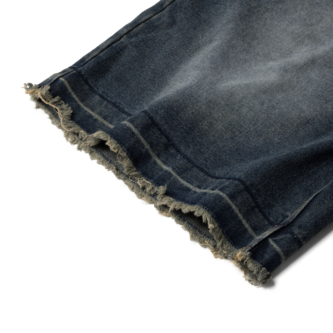 K.M.C - Logo Faded Steel Blue Washed Jorts