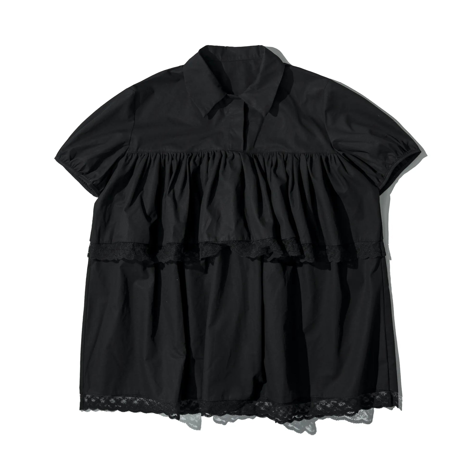 • Shirt-style collar with gathered details for a Japanese-inspired touch