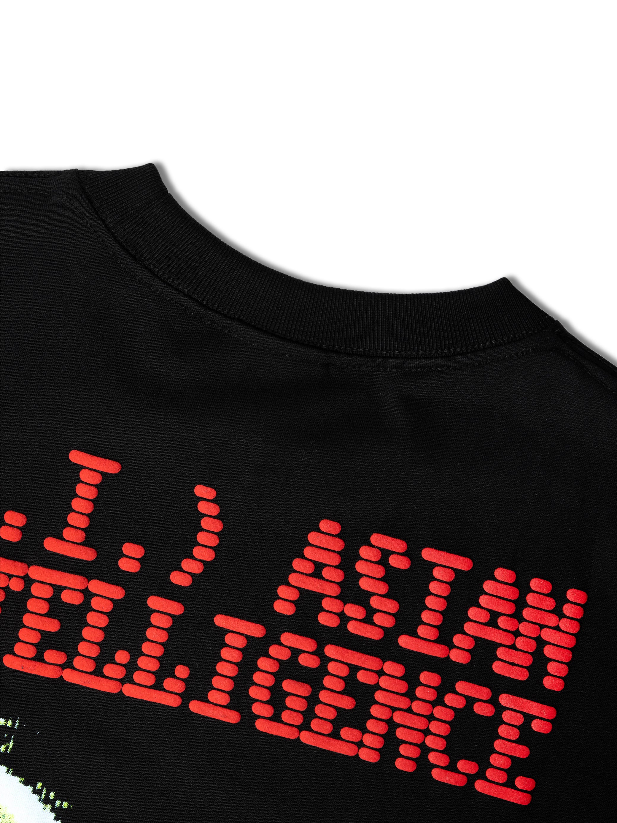 100% 280GSM BRUSHED COTTON T-SHIRT - RIB KNIT CREWNECK - DROPPED SHOULDER - SILK SCREEN GRAPHICS ON FRONT & BACK